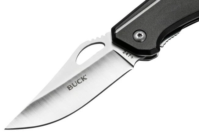 The Buck 246 & 247 Collector’s Set is a nice collector’s set of two Buck knives. In terms of design and material choices, the knives are identical. The only difference is in the size and the pocket clip. The 247, which is the larger of the two, has a pocket clip. Its little brother doesn’t have a pocket clip. Due to its size, the small knife is easy to carry with you, so it doesn’t need one. The opening system works the same for both knives, because you use a thumb hole. When opened, a solid liner lock holds the blade in place.