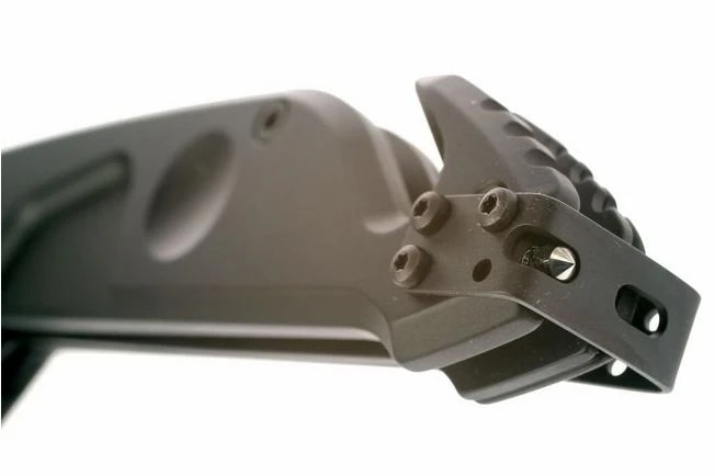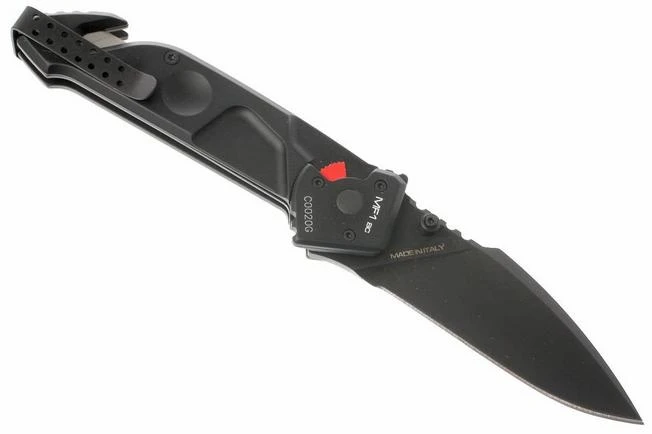 All MF knives are equipped with a rear glass breaker. The circular milling on their handle makes it easier to change the grip position from saber to reverse grip.
