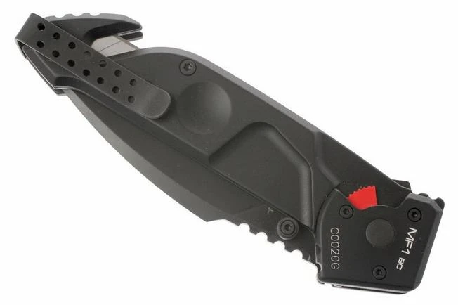 The clip is reversible. In particular the MF1 BC version (Belt Cutter) has a rear belt cutter with industrial cutter blade that can be easily bought on the market and replaced. It comes with a built-in screwdriver in order to regulate and calibrate the firearm optics.