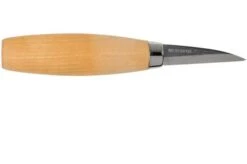 The Morakniv Wood Carving 162 is a specialist tool for wood work. It is perfect for scooping out wood, for example to cut spoons. The round shape enables you to carry out tasks you wouldn’t be able to carry out with a normal knife. Compared to the Mora 163 it can cut away slightly smaller pieces of wood.